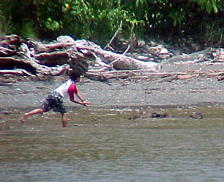 Tico boy casting a net near "Boca de Nosara," mouth of the Nosara River.