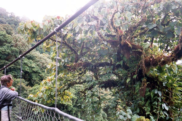 Shar viewing epiphytes from sky bridge on another canopy walk in the Santa Elena Reserve, which is right near the Monteverde Reserve.